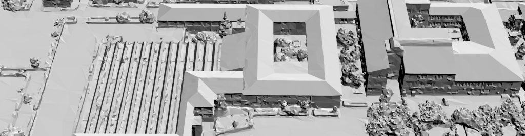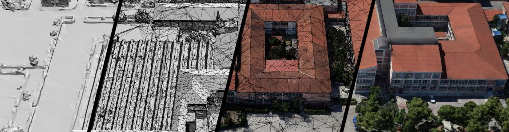 The university campus 3D model was built from 660 UAV images, taken from both vertical and oblique angles