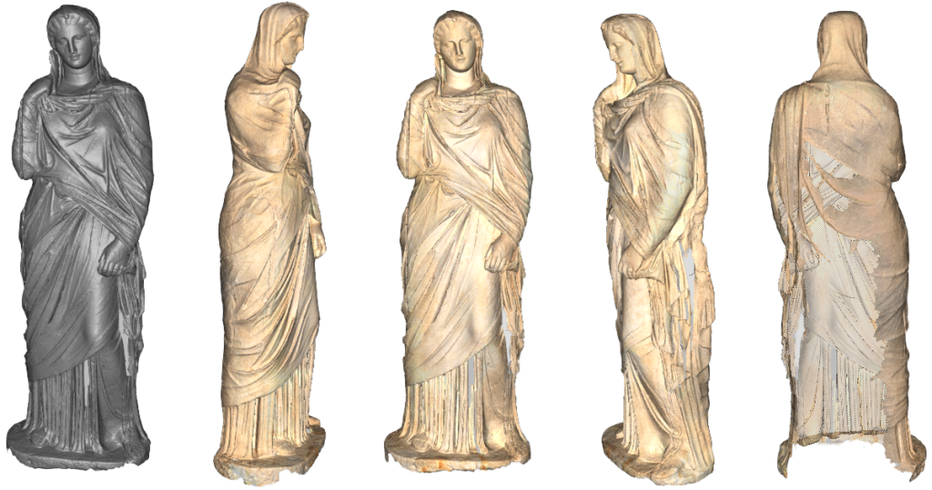 The next step was texture mapping, where photorealistic textures were integrated onto the polygon meshes. This ensured that not only the geometry but also the surface details and appearance of the artifacts were faithfully reproduced.